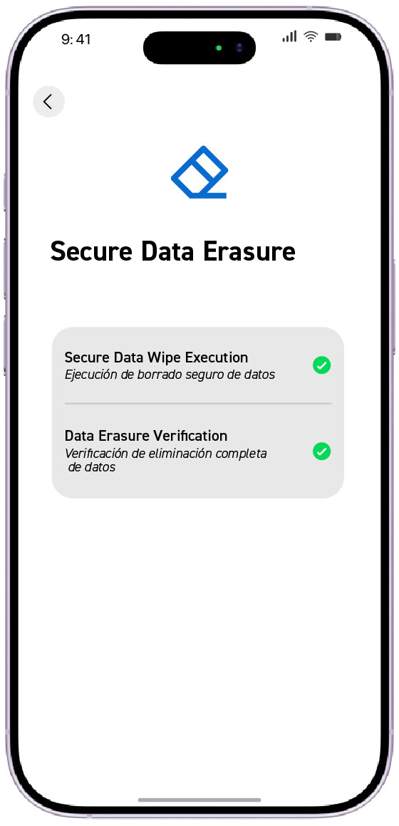 Todos los dispositivos pasan por borrado seguro certificado de datos, asegurando privacidad total.