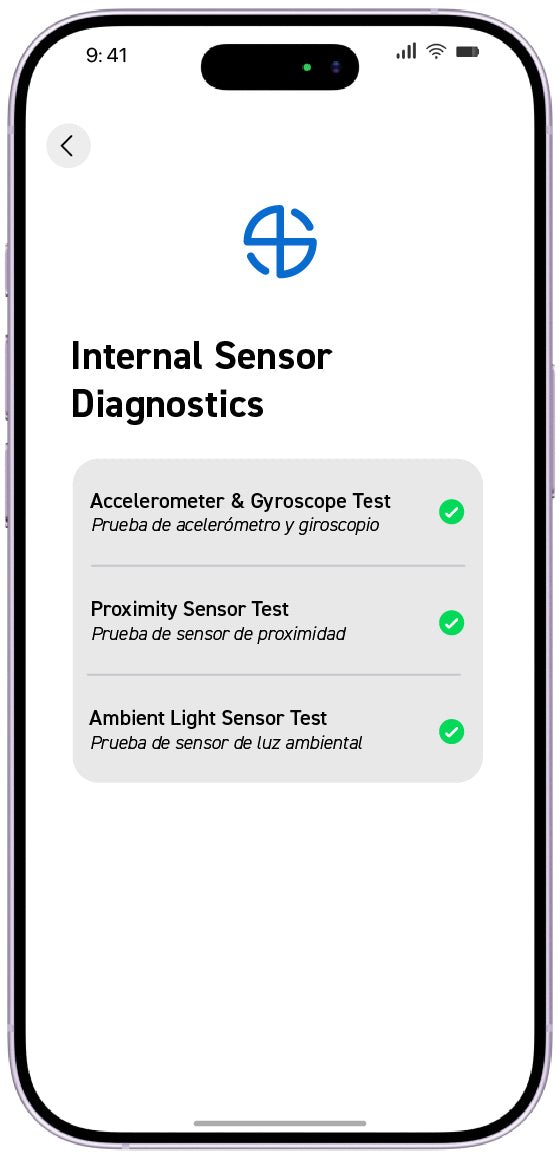 Probamos acelerómetro, proximidad, giroscopio, luz y sensores críticos del sistema.