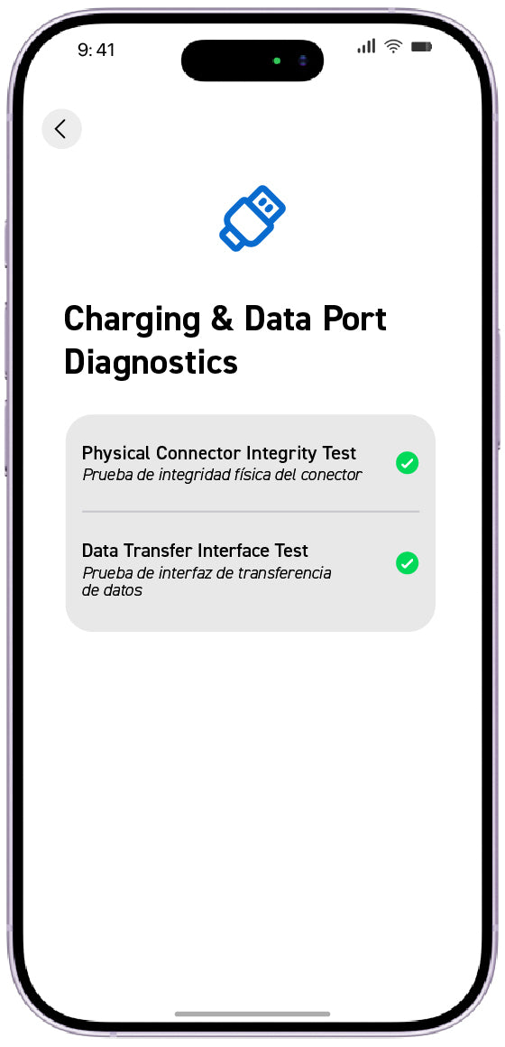 Validamos conexión física, transferencia de datos y firmeza del conector.